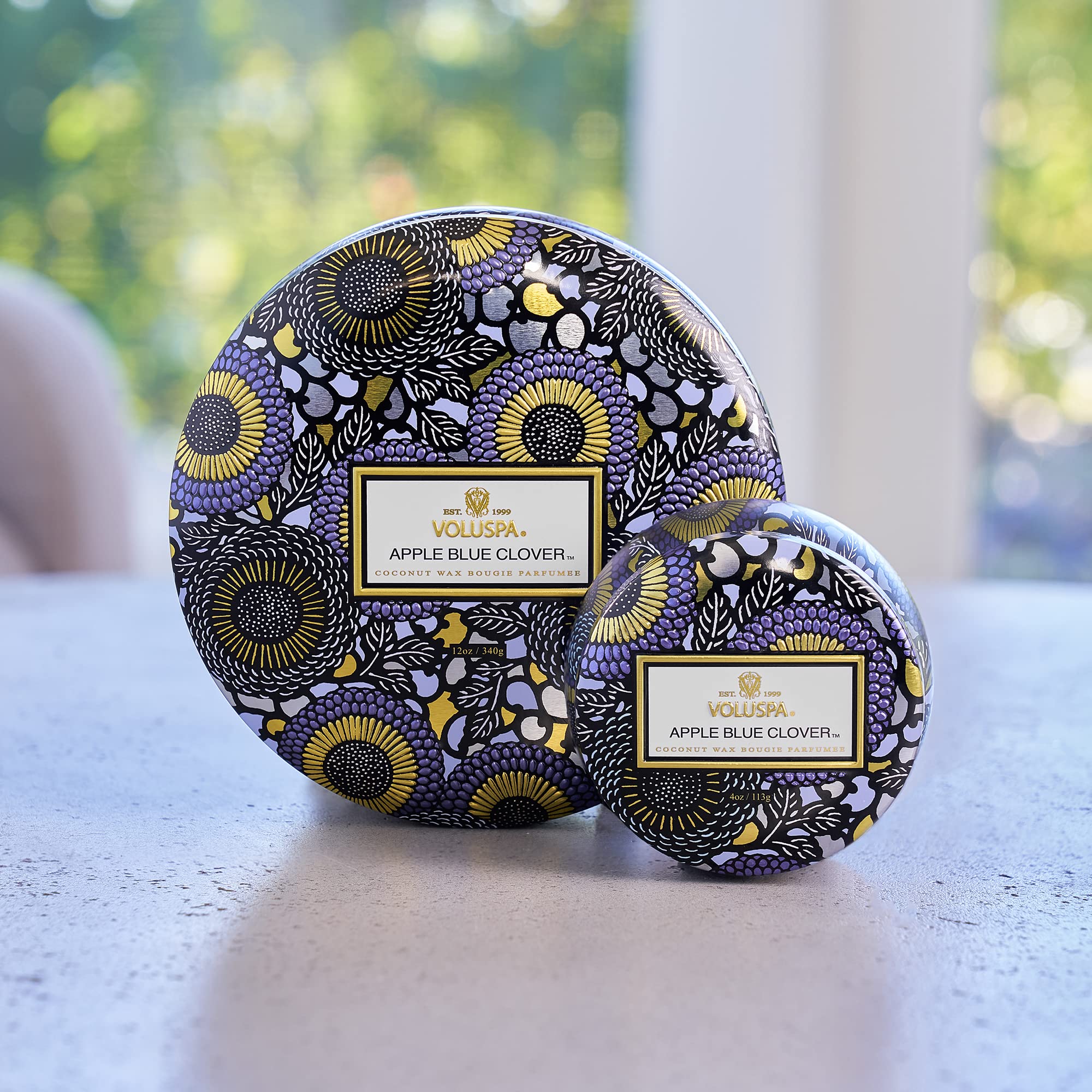 Voluspa Apple Blue Clover Candle | 3 Wick Tin | 12 Oz. | Coconut Wax for Clean Burning