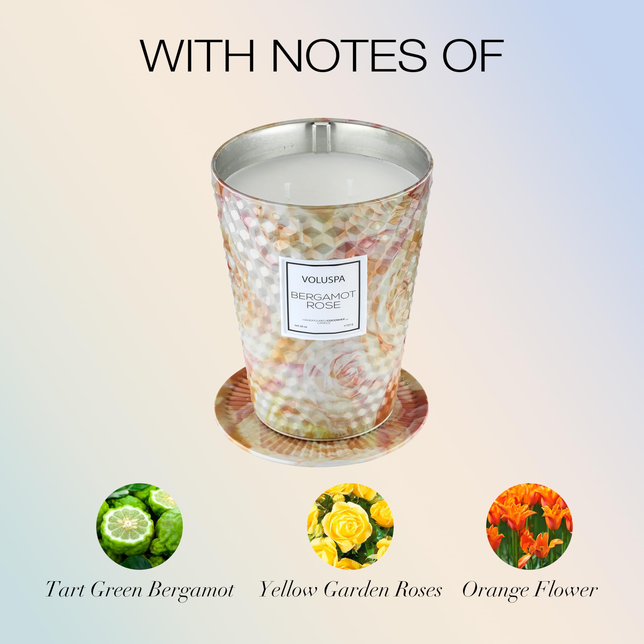 - Beautifully Scented: Soothe your senses with the aromatic Bergamot Rose candle - this floral tin candle candle comes in an ideal 26 oz size