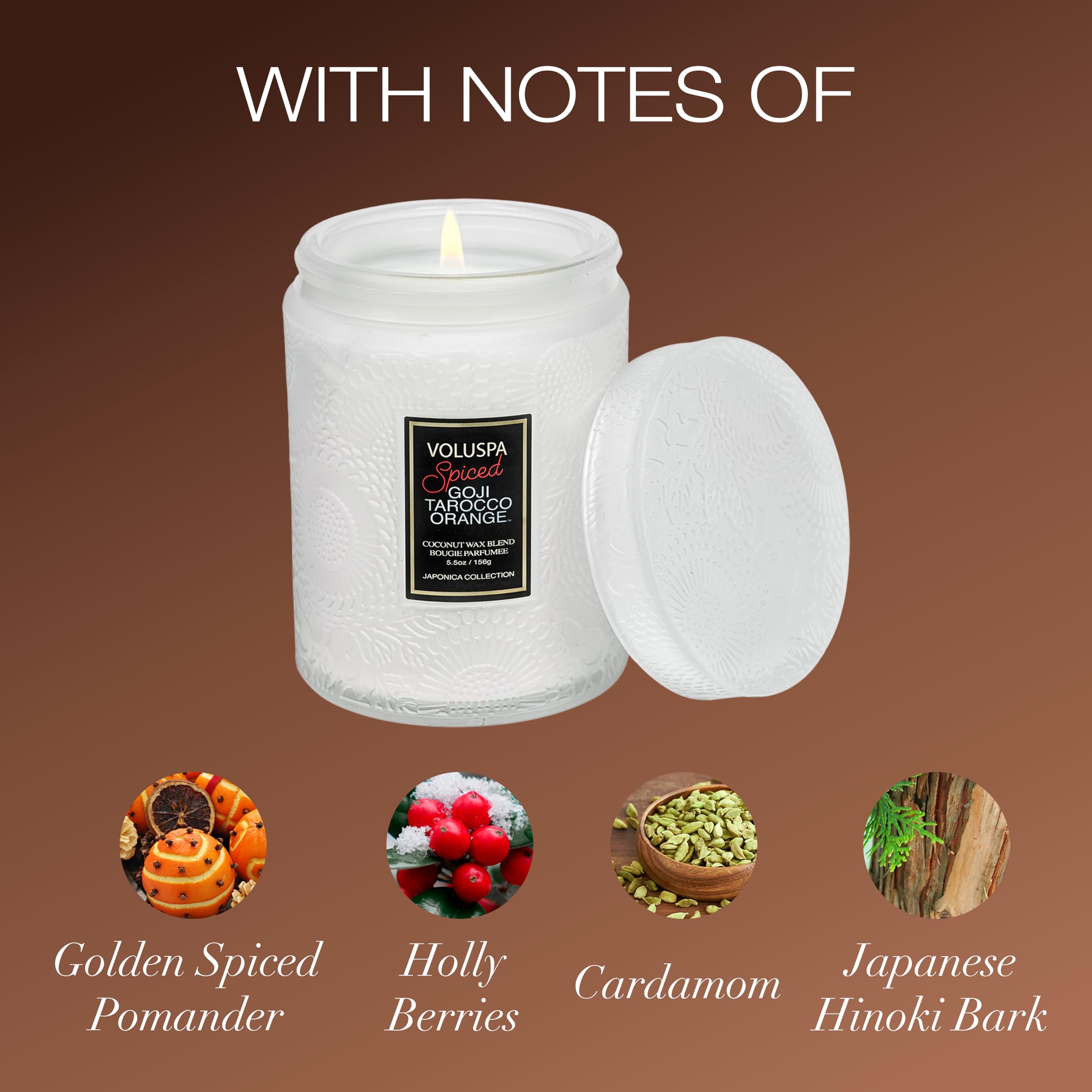 Voluspa Spiced Goji Tarocco Orange, Small Candle Jar, 5.5 Ounces, 50 Hour Burn Time, Coconut Wax for Clean Burning, Handcrafted in the USA